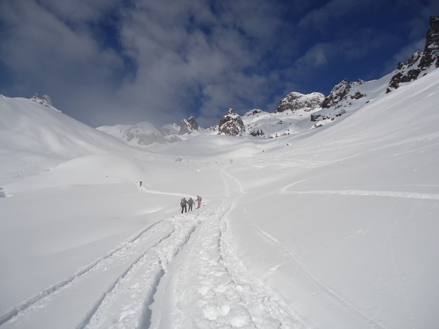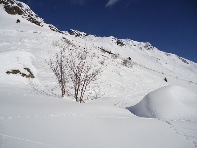 Toujours beaucoup de neige. Nombreuses purges dans les versant sud.