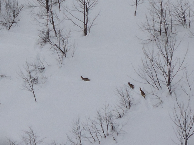Beaucoup de chamois qui arrivent à brouter ou les purges ont décapé jusqu'à l'herbe. Vu également 3 chevreuils.