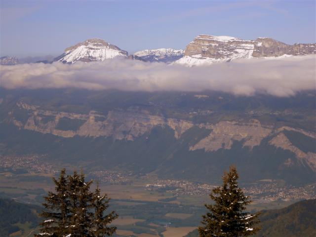 Après le Crêt Luisard, passage au refuge puis au sommet du Crêt du Poulet, où quelques belles jonquilles sauvages émergeaient de la neige, vers la table d'orientation versant Isère.