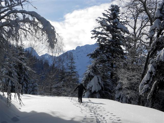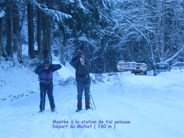 , un message indiquant que la sortie était maintenue ce samedi, avec un objectif "sûr" du point de vue avalanches : la route de Val Pelouse, remplaçant le Col de l'Aigleton !Ce message totalement subliminal a échappé à la vue consciente des consultants habituels du site, et seuls 3 subconscients, mais pas inconscients, ont profité de cette belle sortie ensoleillée, avec une neige épaisse et poudreuse un peu lourde (80 cm à 1540 m) : Thierry, Daniel, Geneviève.