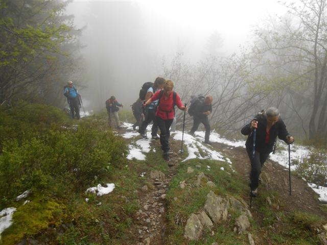Sur le plan sportif, le groupe était homogène, et la marche dans la neige fondante n'a pas entamé le moral des troupes : à partir du chalet de la Jasse, la traversée du grand Chat représentait 700 mètres de dénivelée positive, puis 700 mètres de dénivelée négative.