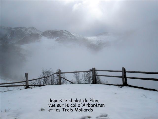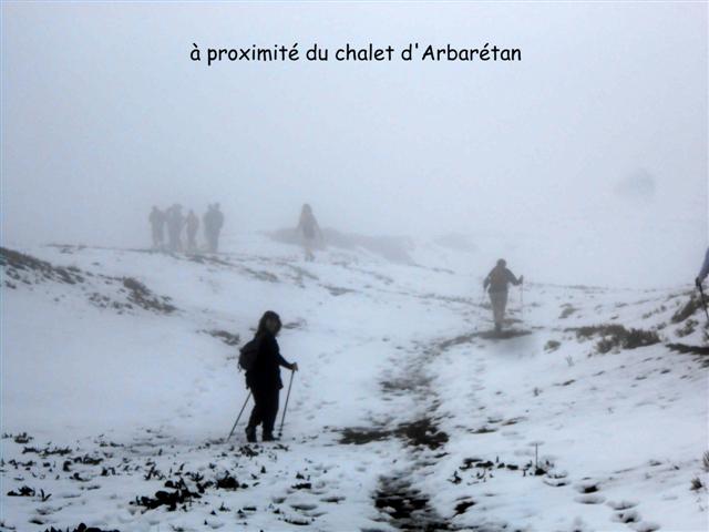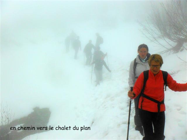 Ensuite, séquence orientation G.P.S. pour rallier le bucolique chalet du Plan par le sentier jaune et ses variantes parsemées de neige, dans le grand creux embrumé sous le Chapotet !