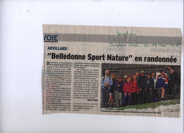 Cette sortie inter-associations a réuni 8 membres de Belledonne Sport Nature, 4 membres d'Arvigym et 2 membres de l'association de Tennis de table d'Arvillard, certains étant adhérents de 2 de ces associations.