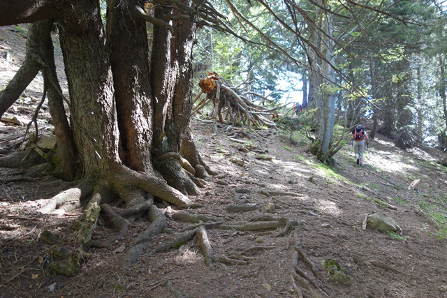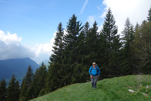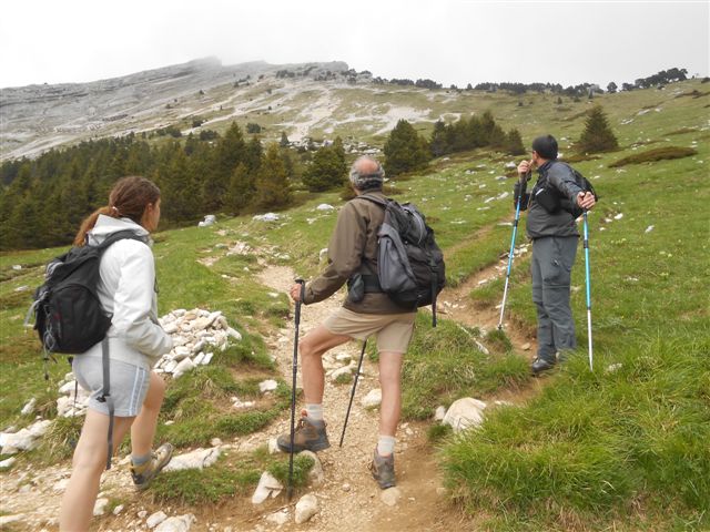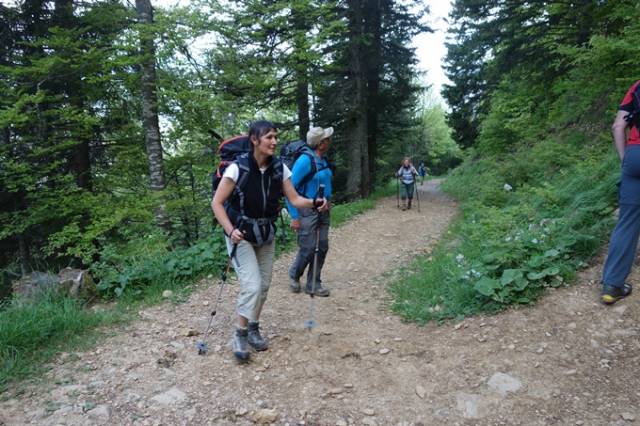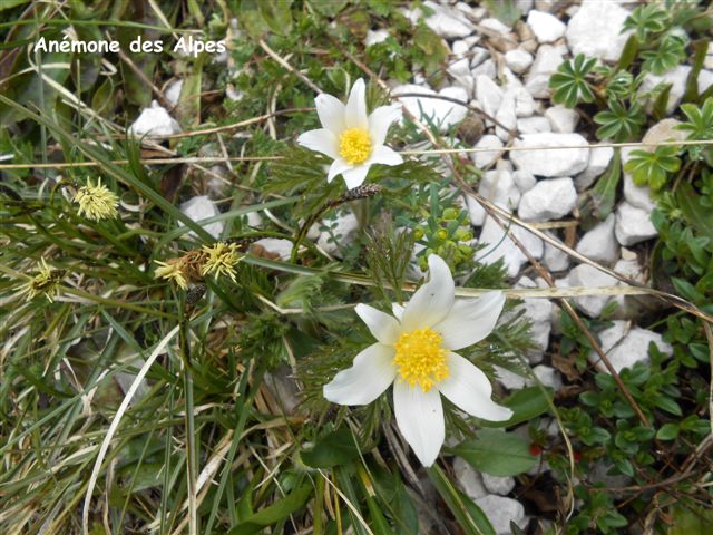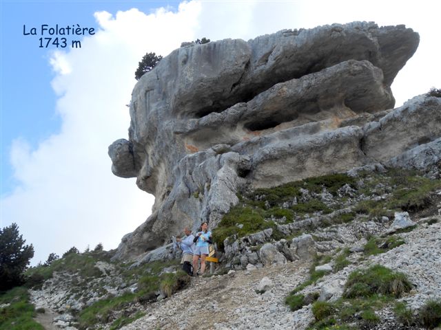 Première option pour le groupe TTGM (Thierry D., Thierry B., Geneviève, Maylis) : le sentier « classique », mais non moins impressionnant pour celles et ceux qui n’étaient jamais venus, par la Folatière. Une montée efficace avec une vue dégagée presque tout du long sur la Pinéa et parfois le Néron, parsemée de gentianes, globulaires et même de quelques anémones des Alpes (cf la photo de la botaniste et la botaniste en photo