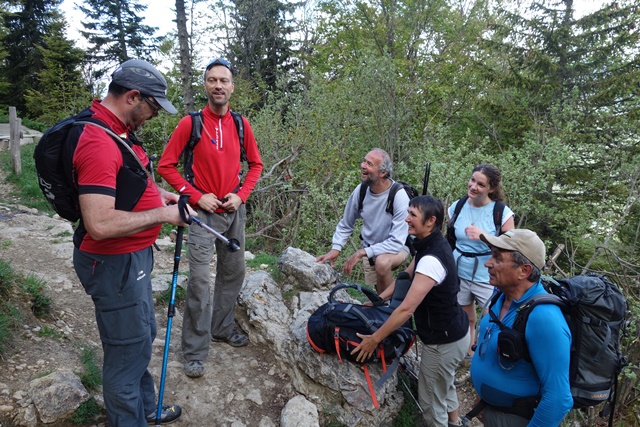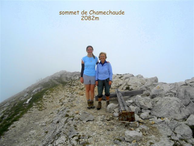 Revenus sur le sentier vers Chamechaude nous rejoignons le reste de l'équipe stationnée au sommet dans la brume.Après des retrouvailles au sommet avec Rosario et Jocelyne, nous redescendons tous par la voie « classique » et apprécions un goûter relevé à la vulnéraire qui fera également office de kill-grippe (efficace on l’espère!) pour Thierry.