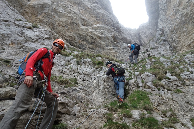 l'ascension s'effectue sans trop de peine, une trentaine de mètres presque verticale, le final est un peu étroit mais heureusement le câble et la motivation étaient là pour nous aider à franchir la zone !
