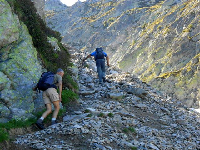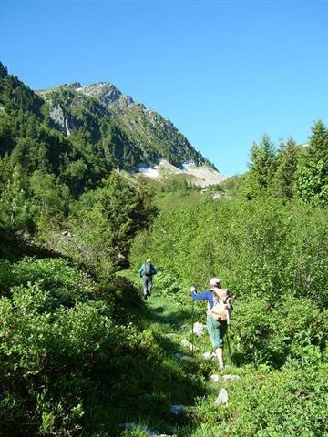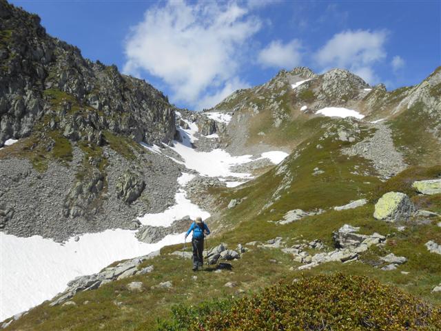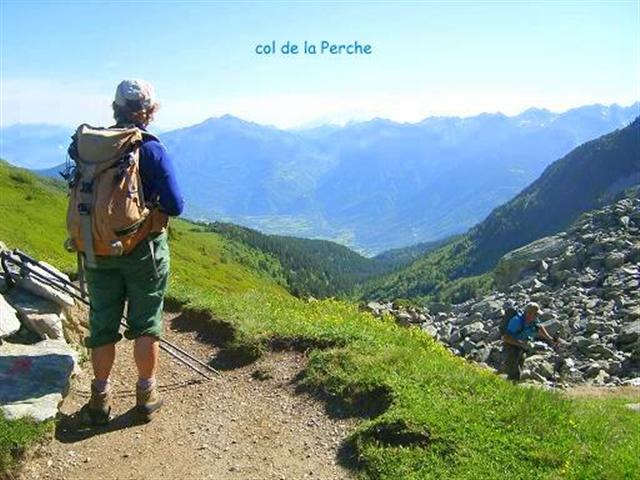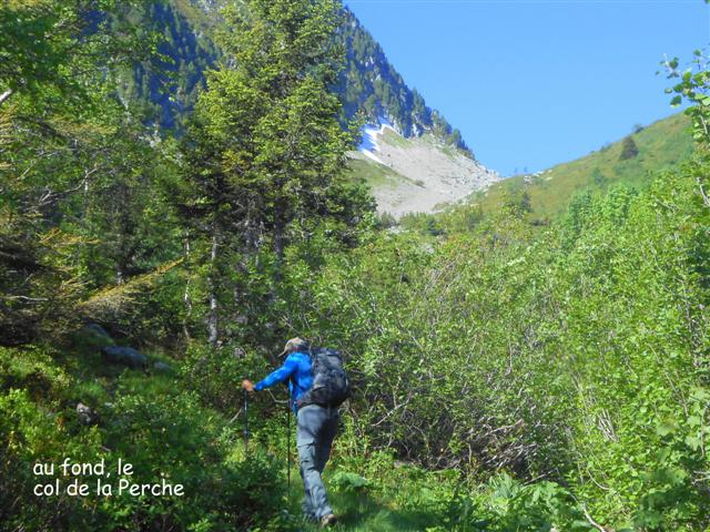 Remontée du discret vallon de Fontaine Noire, par une sente balisée en rouge, rive droite du ruisseau, qui mène à travers les rhododendrons ferrugineux, les myrtilliers et quelques éboulis, au col de la Perche (1984 m). Vues étendues sur le Grand Arc, le Mont-Blanc, le vallon d'Arbaretan, et sur les Envers de la Pointe du Rognier. Du col de la Perche, on remonte le Grand Canal, vaste combe pierreuse à souhait dominant les sources du Gargoton, sous l'ombre de la pointe 2262, avec les pentes soutenues de la Pointe du Gargoton à notre droite. Beaucoup d'anémones soufrées, de la pierraille instable sous le pied, et enfin la crête délimitant les versants Mauriennais et Belladonien.