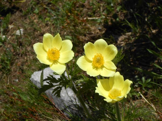 Le sentier balisé jaune (parfois rouge) dégringole jusqu'à la Combe du Boeuf, pittoresque cirque en contrebas nord de la Croix du Rognier. Casse-croûte au point 2223, dans les herbes vertes. Puis une combe raide et un sentier balcon orné d'innombrables anémones jaunes nous ramènent au nord vers le passage de Vachevielle.