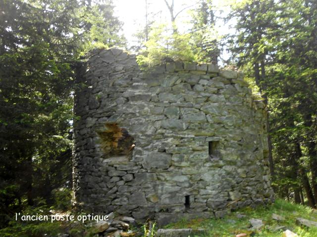 La fin de la descente se fait le long d'une crête sans doute sensible à la foudre en cas d'orage, témoins ces grands sapins desséchés gris ! Puis un tapis d'aiguilles de sapins en guise de sentier, la visite du poste optique ruiné, à 1671 m, et le retour à la case "départ", vers ce grand chalet de la Fontaine Noire propice aux barbecues et soirées conviviales !