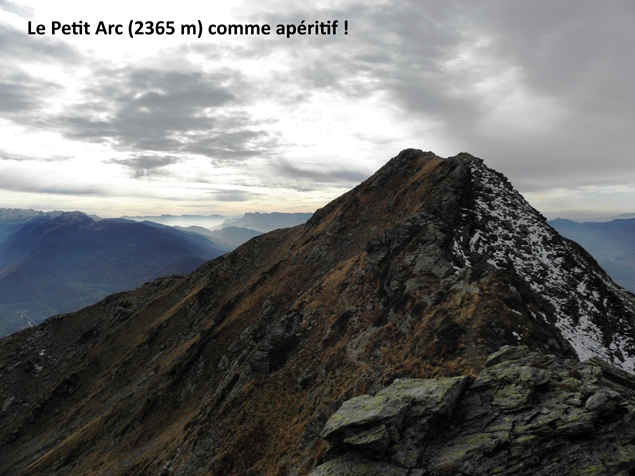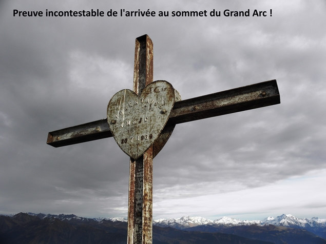Comme hier, me voilà parti pour un test (concluant) du genou sur les pentes des belles montagnes qui nous entourent. Aujourd'hui : le Grand Arc. Visible de partout, celui-ci me narguait depuis plusieurs mois. Le voici maintenant conquis !!