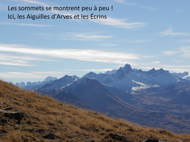 Le descente sur Montpascal s'est faite par Crêt Lognan et la Combe de l'Indrion. Cette descente est longue, sans véritable replat pour reposer les genoux, mais quel plaisir de faire face au versant de Belledonne que je connais le moins bien. 1300 m plus pas, les cuisses n'ont pas dit non au siège de la voiture !