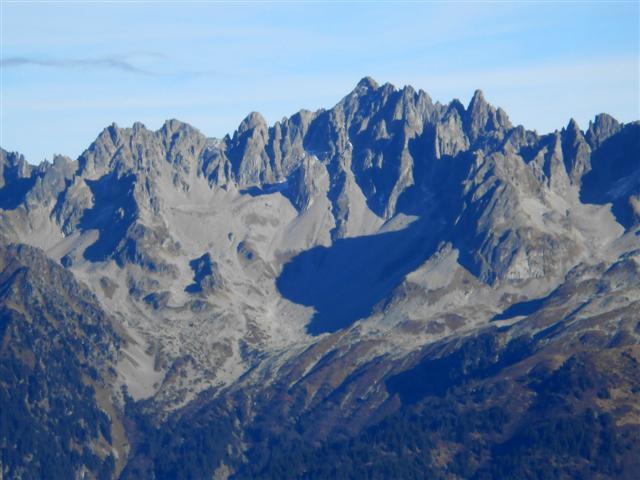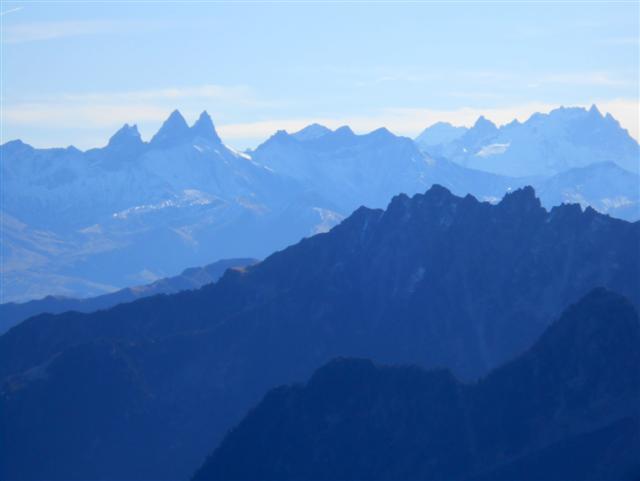 Mardi 17 et jeudi 19, Saint Martin intercédait encore auprès du Bon Dieu pour maintenir l'anticyclone ; vite avant que ça se déglingue, la traversée des Grands Moulins et l'ascension du Rognier par Prodin, pour renouer avec Belledonne ! Le Mont Blanc, les Aiguilles d'Arves et la chaîne de la Lauzière en fond d'écran, les herbes des prairies rousses, la Croix du Rognier blanc étincelant sur bleu azur, encore une fois, quel régal !