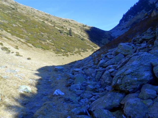 A ses dires, confirmés par ceux qui connaissent, c'est un magnifique vallon agrémenté d'un lac Glacé conservant longtemps en saison des "icebergs", de l'austère lac Noir, et de grands cairns tibétains jalonnant le parcours en éboulis.