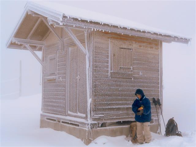 Là-haut, au Super, les 2 raquettistes constatent qu'ils ont oublié d'équiper leurs bâtons de rondelles, encore sous l'emprise de la rando estivale !