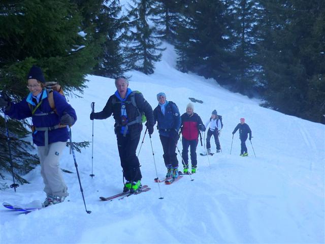 Nous sommes partis à 7 (Geneviève, Guy, Clémentine, Simon, Ghislaine et Raphaël en ski de randonnée et Thierry en raquettes), Daniel ayant décliné cette sortie pour se soigner.