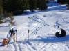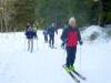 Les 2 groupes de rejoignent au chalet de Pierre Roubet et terminent ensemble cette descente dans une neige cartonnée. On slalome entre les cailloux comme prévu et on retrouve la piste de ski de fond qui nous ramène au parking complètement saturé de véhicules. Nous déchaussons et repartons au milieu d'une double haie de voitures qui s'étend sur plus de 2 kilomètres.