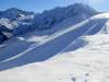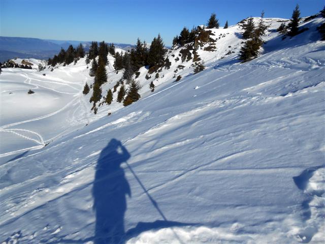 de là, ça se corse : la seule alternative proposée longe la piste bleue du Dahut en contrebas du filet de protection, en amont d'une pente raide et tardivement ensoleillée.
