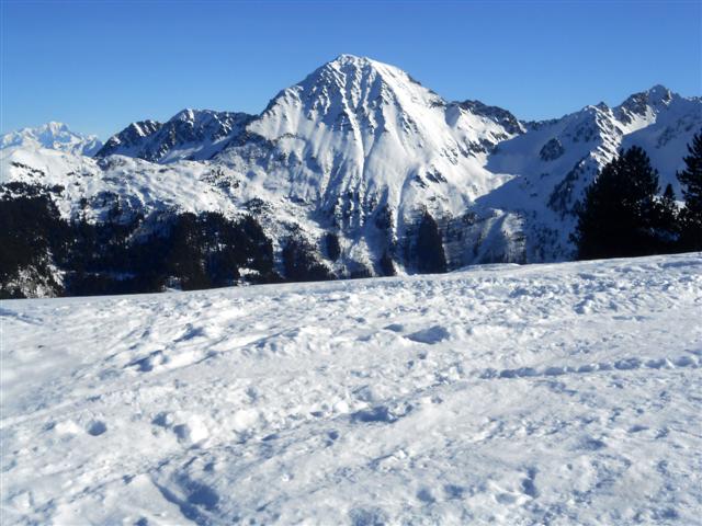 Il est possible de continuer jusqu'au sommet des Plagnes, en rejoignant la table d'orientation et en parcourant la crête vers le sud. Mais je n'ai repéré aucune pancarte installée par la station. Il est aussi possible de démarrer de Prérond et rejoindre le super Collet en suivant approximativement les pistes de raquettes ( environ 25 minutes ).