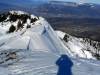 Le tracé, signalé par quelques pancartes en bois, "RANDO", zigzague en pointillés parmi les nombreuses traces de descente "hors piste", jusqu'au au col de l'Occiput, par le versant situé à gauche du télésiège des Plagnes ;