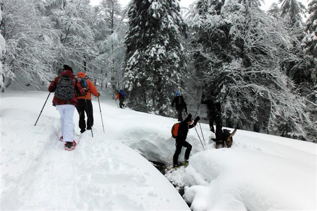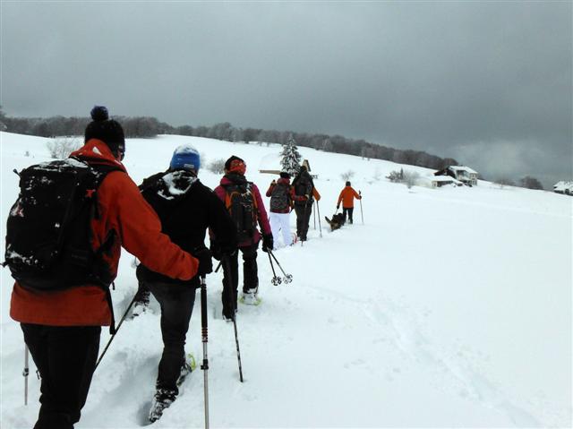 Daniel a participé, en tant que représentant de la F.S.G.T., à l'Assemblée Générale de la Coordination Montagne, qui se tenait à Xonrupt-Longemer dans les Vosges, du 3 au 5 mars. Après les réunions en salle, une belle sortie à raquettes concluait ce court séjour. La neige avait plâtré les reliefs, l'ambiance était bonne !
