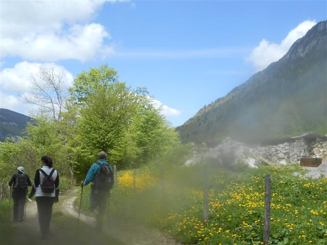 Chalets aux toits pentus typiques, falaises rocheuses de Bevereau, hêtres et bouleaux aux silhouettes tourmentées, gentianes du printemps, populages des marais, gentianes acaules, feuillus vert tendre et résineux sombres des pentes, sentiers raides et glissants, croix des sommets : c'était bien là ce que nous recherchions en ce 51 ième jour après Pâques, portés par le souffle des divinités !