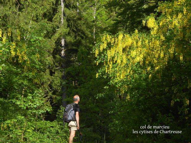 Sortie botanique parmi les ancolies du col de Marcieu, les amélanchiers du Canada aux étoiles blanches, les orchis roses et jaunes, et les gentianes acaules bleu foncé, sans oublier les innombrables fleurs aux teintes jaune poussin, tout ça posé par un peintre discret sur les tapis verts tendre ! Les marmottes déboulaient des rochers...