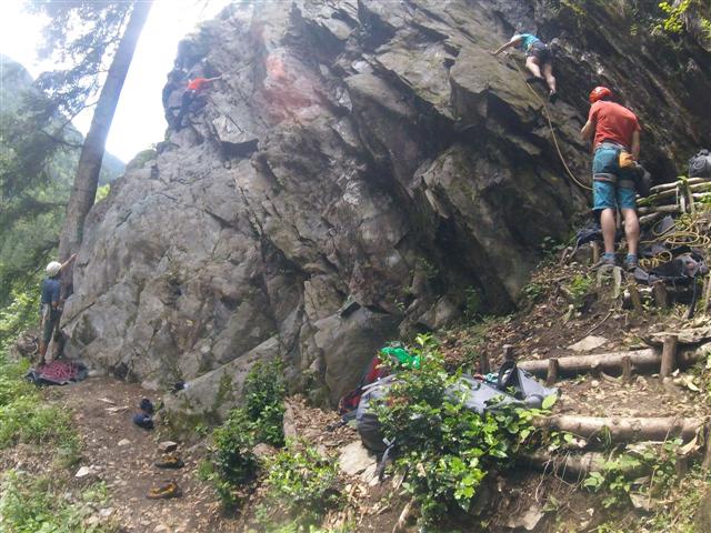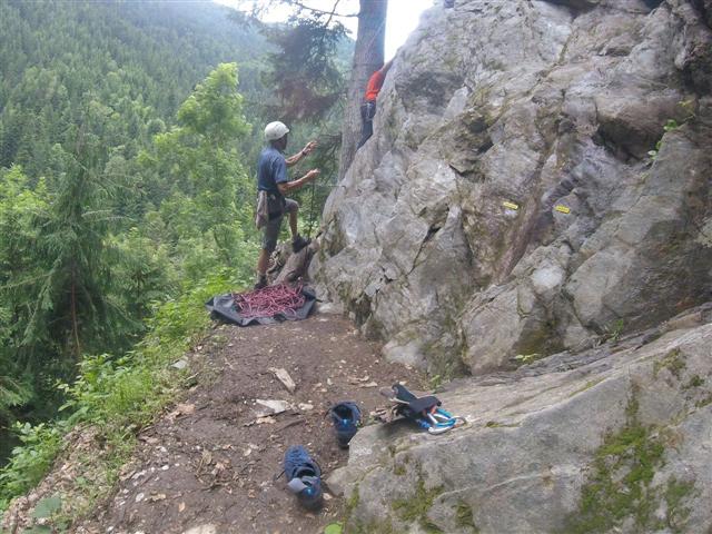 Le site d'escalade fut investi par une quinzaine de grimpeurs venus de l'Aveyron, de la Haute-Savoie et de Lyon, ainsi que par quelques anonymes ; visité aussi par les familles et les promeneurs, il a pu sécher suffisamment pour le plaisir des amateurs de rocher ! Daniel, Serge et Pierre assurèrent l'encadrement et la mise à disposition du matériel.