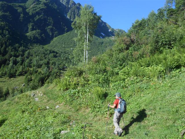 Sentier avec marques jaunes, très bien entretenu. Un aperçu du beau vallon de la Pierre, que l'on quitte pour remonter celui de la Vallette.