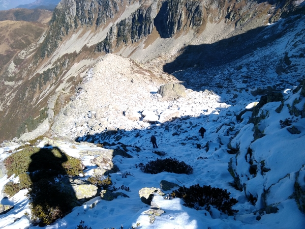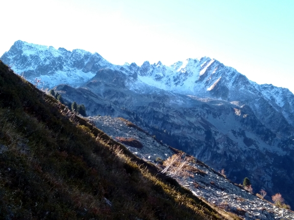 Belle lumière d'autome, des chamois en pagaille, un peu de neige à partir 2300 m (pas gênante, au contraire elle colmate les trous !)