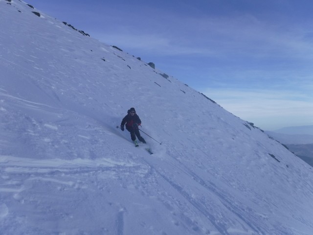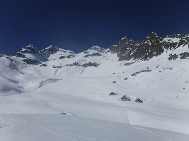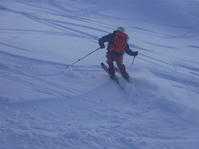 Le début de la descente jusqu'aux chalets du Bacheux est agréable (essentiellement poudreuse) ensuite c'est moins bien et, rapidement, les cailloux ne sont pas loin.