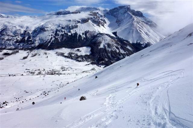 Pic de Bure, vallon de l'Ane et vallon Froid, Tête de Vallon Pierra, Grande Combe, Chauvet du Festre, à skis ; balades pédestres au col de l'Aup, visite de Super Dévoluy et de ses terrasses ensoleillées : les journées sont bien occupées. La neige dure et perchée assez haut au début, a fait place à une belle fraîche dans laquelle les virages s'enchaînent !