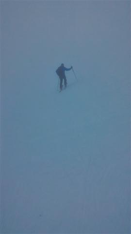 Le haut du vallon était déjà pris dans la brume et les nuages ; rapidement, au niveau du lac des Balmettes (2193 m), la vue fut limitée à quelques mètres, et les 2 skieurs en tête décidèrent d'entamer la descente ; boussole et G.P.S. vinrent à la rescousse.