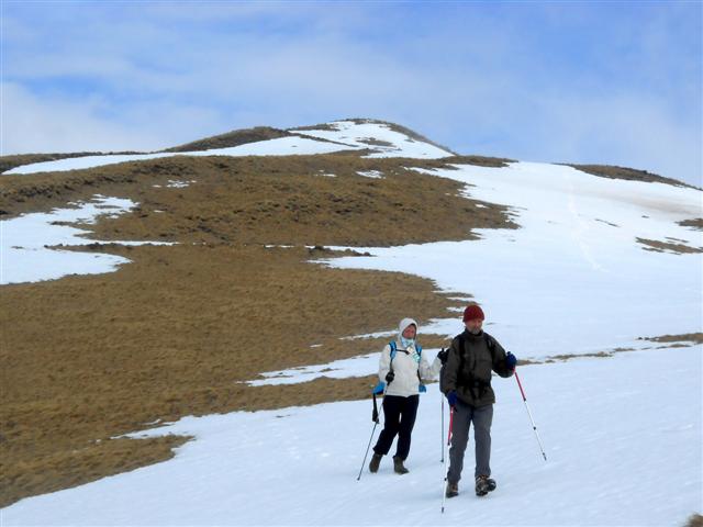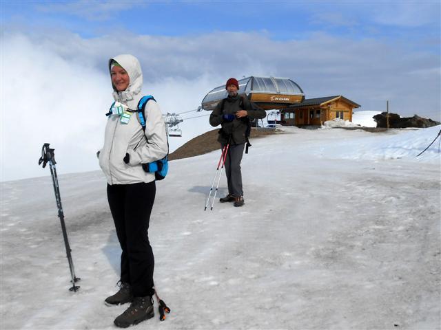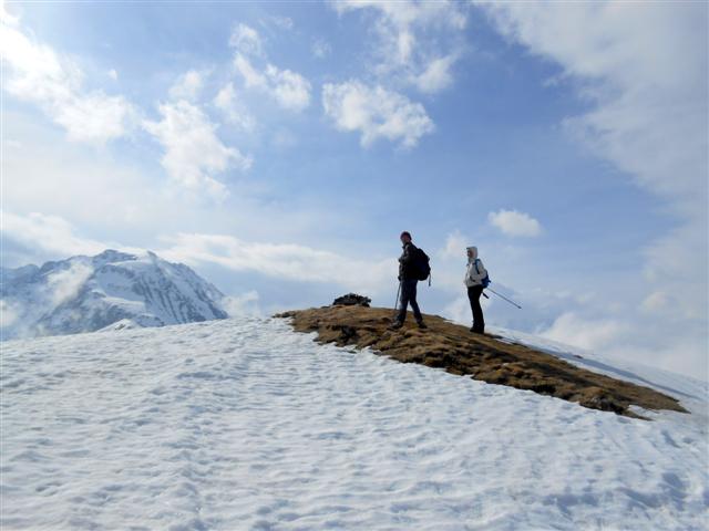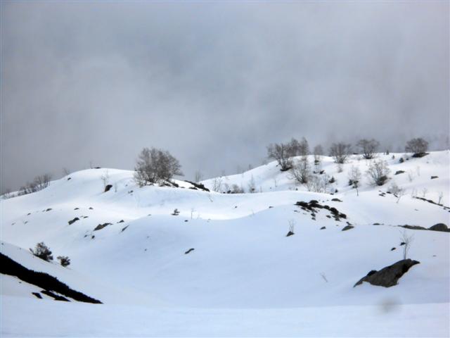 Partis de Prérond à pieds sur les pistes en partie déneigées, nous avons surmonté la brume et les nuages en arrivant au télésiège de Claran. Quatre skieurs de rando croisés au total, les remontées mécaniques en arrêt, le gazon et les crocus pointant le bout du nez, le vent froid sur les crêtes, tous les ingrédients étaient réunis pour faire de cette traversée jusqu'au col de Claran une balade hiverno-printanière agréable.