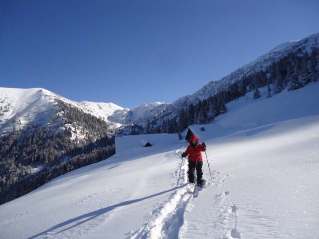 Beaucoup de neige fraîche (50 cm au chalet de la Grande Montagne du Verneil), pas de trace, donc il a fallu la faire y compris pour une partie de la descente.