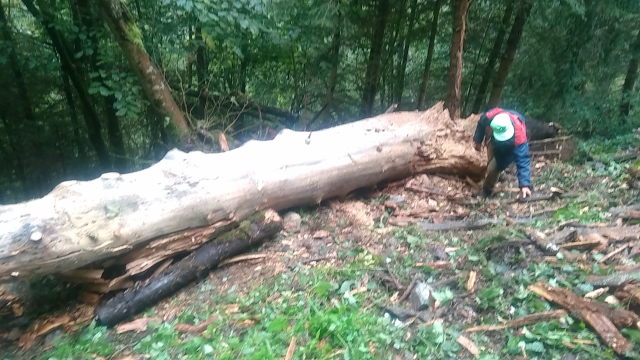 - Enlèvement des deux tronçons de l'arbre, nettoyage et remise en état du sentier qui même aux voies du Milieu, Crêt Sarret, Vertical 12 (pas trop de dégats).