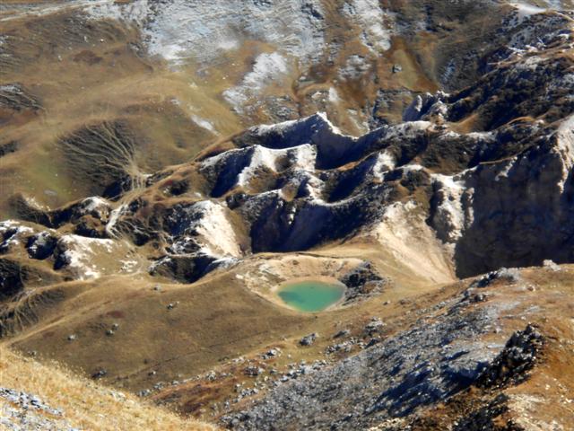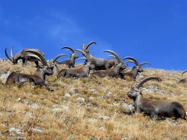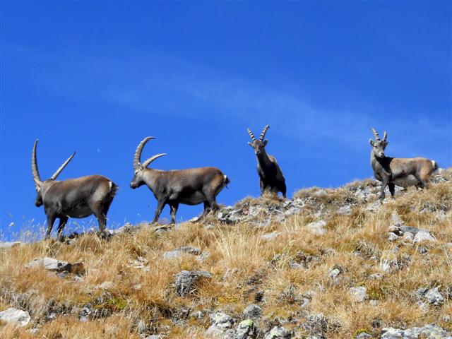 Après avoir casse-croûté tout là-haut, sous le soleil, nous avons croisé à la descente, "nos" bouquetins paisibles, admiré le petit lac vert en contrebas, entouré de dolines de gypse, et rejoint le carrosse à la Saussaz vers 14 h 30 environ.