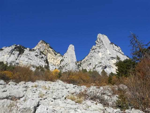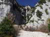Un groupe de randonneurs nous indique alors que nous nous sommes trompés, nous redescendons de 80 mètres, nous voilà à priori sur le bon sangle, nous longeons le pied de la falaise pendant un bon kilomètre sur un sentier étroit ou par endroit, avoir le pied sûr correspond à rester en vie.