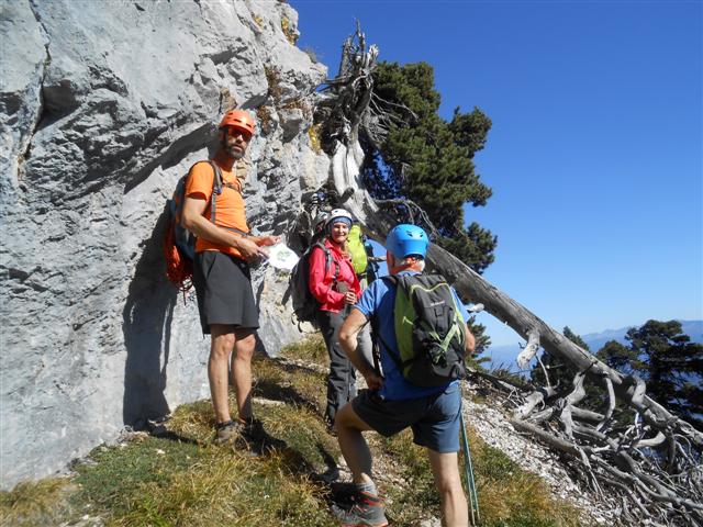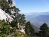 Finalement nous abdiquons, les sangles étroites, la concentration nécessaire par endroits eu égard à la verticalité ont eu raison de notre motivation. Nous finissons le retour sur le plateau par quelques pas d’escalade sans oublier de sortir la corde, au sommet un bon picnic nous remet de nos émotions et nous rentrons par le sentier du sommet jusqu’à l’Aulp du Seuil.