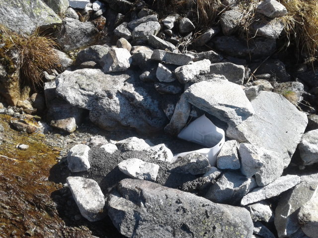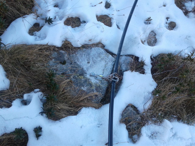 - Mise en place et calage à l'aide de pierres de l'arrivée du tuyau au refuge.