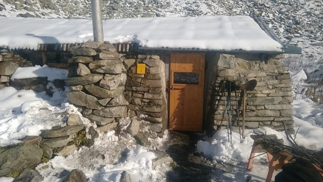 Ne pas gaspiller le bois. - Nivellement (relatif) du sol. Grâce aux sacs de béton montés par hélicoptère avant le trail "L’Échappée Belle", nous avons nivelé sommairement le sol notamment sous la table.