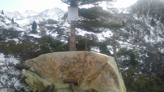 - Mise en place d'un bûcher. Il est situé au bord du sentier qui monte depuis Cohardin, vers 1830 m, au niveau de la cascade.