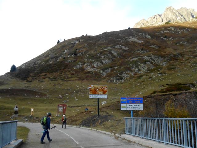 La descente des 150 premiers mètres dans le vallon raide du ruisseau du Pin, encaissé et pierreux, et partiellement enneigé, se fit à un train de sénateurs ; enfin, une belle mare à 2500 m signa la fin des hostilités ; et c'est sur un sentier bien cairné que nous rejoignîmes le pont de Rieu Claret, côté Savoie. Non sans avoir repéré et touché la borne 70, au confluent des ruisseaux de Buyant et Rieu Claret, à 2070 m d'altitude.