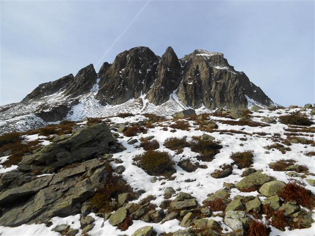 La marche s'est effectuée dans le sens horaire, dans le vaste cirque fermé par les satellites du Rocher Blanc ; ils forment une magnifique couronne de pics dentelés. L'érosion y a créé des tours, des flèches,des dalles polies, pour le plus grand bonheur des géologues et minéralogues. A titre d'exemple, nous avons longé le "Toit", ou la "Pyramide".