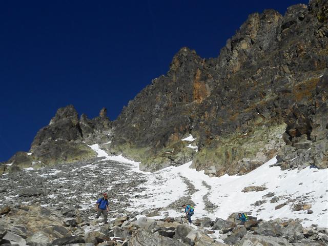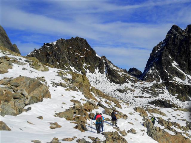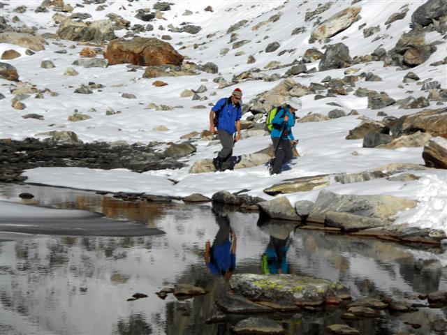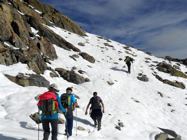 Ce fut une longue marche, rendue difficile par la neige présente dès 2200 m, les pièges entre les rochers émergés, mais aussi le plaisir des premières foulées dans la blanche.