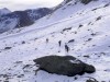 Enfin parvenus au col de Combe Madame, après moult échanges sur la cartographie, l'orientation, le repérage des points caractéristiques (honneur au G.P.S. et à son maître), nous étions en admiration sur le ciel bleu et le versant enneigé au nord du col, mais...point de borne en vue ! Seul le grand cairn du col nous narguait.