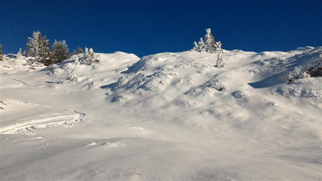 Nous redescendons vers 16 heures, on se croirait presque à la nuit dans le rebord de la station ; nous avons passé l'épreuve de la première sortie ski sans avoir oublié les manips, ni le style prudent !
