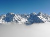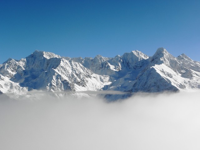 car les nuages descendirent progressivement de quelques mètres, juste ce qu’il fallait pour me retrouver face aux pics, cols, passages, rochers, roches et pointes de Belledonne. Depuis les Grands Moulins jusqu’au Grand Pic de Belledonne, en passant par le Grand Charnier, le Pic du Frêne, la Pointe de Bacheux, le Grand Morétan, le Gleyzin, la Pointe de Comberousse, le Rocher d’Arguille, le Pic de la Grande Valloire, la Pointe Badon, le Rocher Blanc, les Aiguilles de l’Argentière - et j’en passe -, toutes les montagnes y étaient. Immobiles, éternelles, douces, inaccessibles.