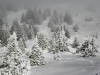 Fallait-il être optimiste pour se lancer à l'assaut du brouillard qui était malicieusement accroché à toutes les crêtes depuis le Crêt du Poulet jusqu'au Grand Rocher. Sur le parking du Foyer de ski de fond du Barioz, l'ambiance était brumeuse et pâle. A quelques dizaines de mètres au-dessus de la tête, une chape ; en face, sur les hauts de Chartreuse, une chape ; en peu vers l'est sur le Granier, une chape. Aucun sommet ne dépassait, alors que la vallée du Grésivaudan se délectait d'un soleil radieux. Les deux autres raquettistes présents et moi avions beau souffler tout ce que nous pouvions, les nuages restaient fermement accrochés aux barres rocheuses.