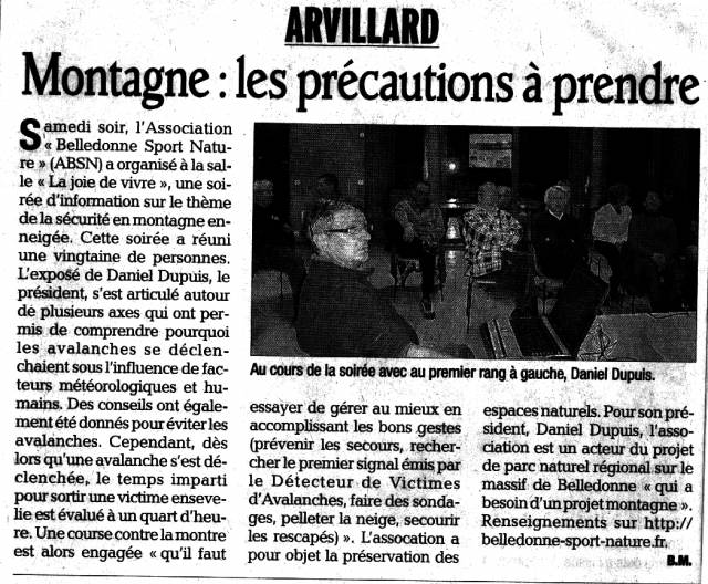 | La sécurité en montagne enneigée - Soirée d'information samedi 14 décembre 2013 Modifié le 22 déc. 2013 à 16:16 GMT, dans Le blog | |